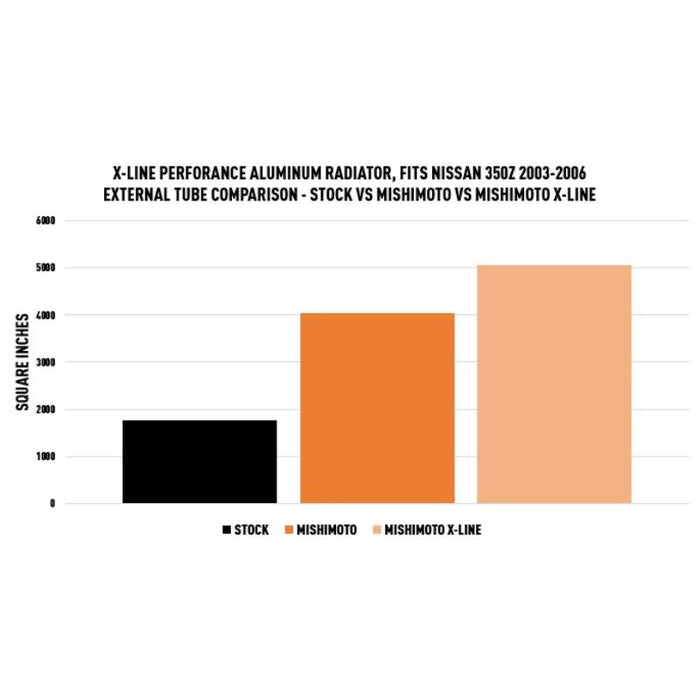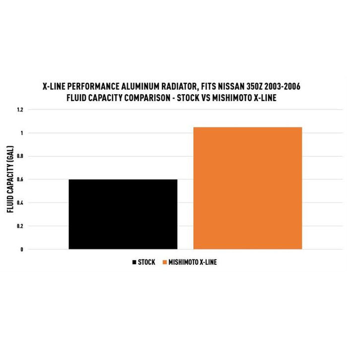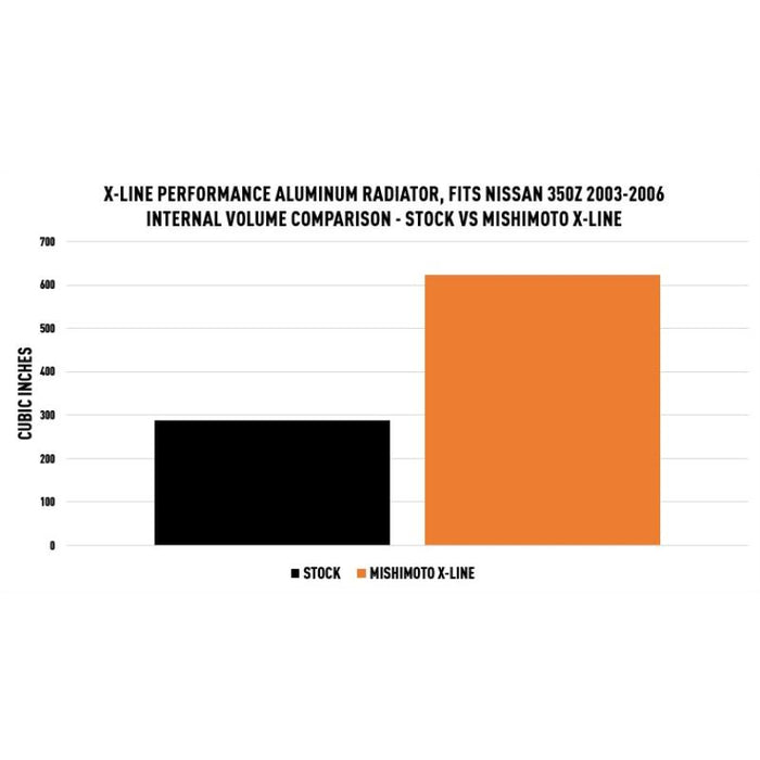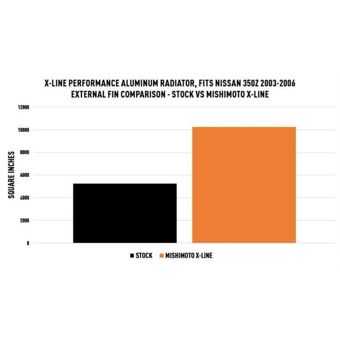 Over the last decade, the 350Z has become one of the best values in used sports cars. The effective suspension, capable engine, and attractive silhouette produce an excellent platform for any form of motorsport from drift to autocross. But, as the modifications and uses for this chassis become more extreme, those pushing their 350Z to the absolute limit need a more efficient radiator. That's why Mishimoto has created this X-Line Performance Aluminum Radiator for the 2002-2006 Nissan 350Z. Our engineering team first focused on improving the radiator's core, specifically the tube and fin specifications. This X-line 350Z radiator's core features more densely packed fins, resulting in a massive 92-percent increase in external fin area over the stock 350Z radiator. Greater fin surface area means improved heat transfer, which translates to cooler engine temperatures. Our 36mm core also dwarfs the 16mm stock unit, providing a 117-percent increase in overall core volume. Our X-line 350Z radiator features precision TIG-welded aluminum end tanks to withstand anything the road or track can throw at it. This radiator also includes a Mishimoto magnetic drain plug to capture any metallic contaminants within your engine coolant and further protect your cooling system. As with all our Nissan 350Z products, this Mishimoto X-line Performance Aluminum Radiator for the 2003-2006 Nissan 350Z includes our signature Mishimoto Lifetime Warranty for a lifetime of cooling performance.